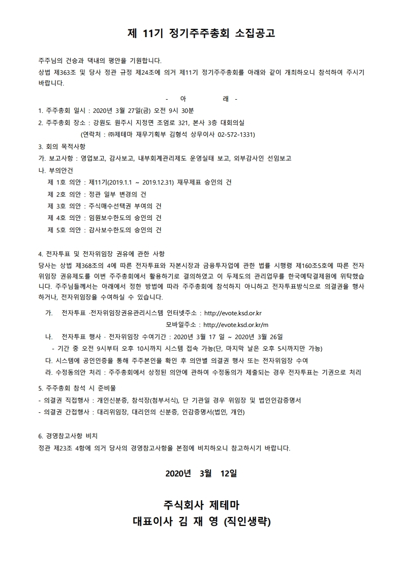 제11기 정기주주총회 소집공고