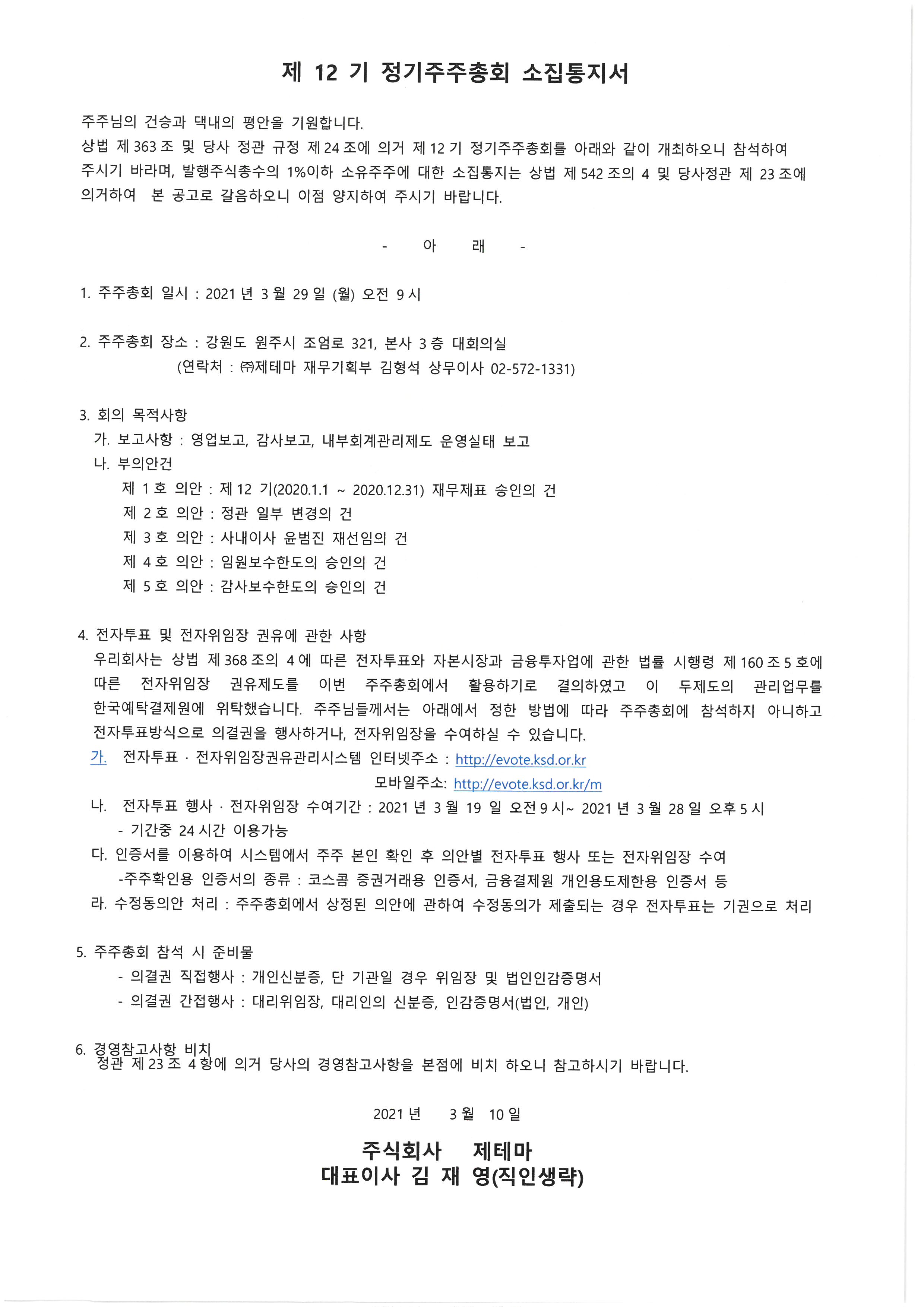 제 12기 정기주주총회 소집공고