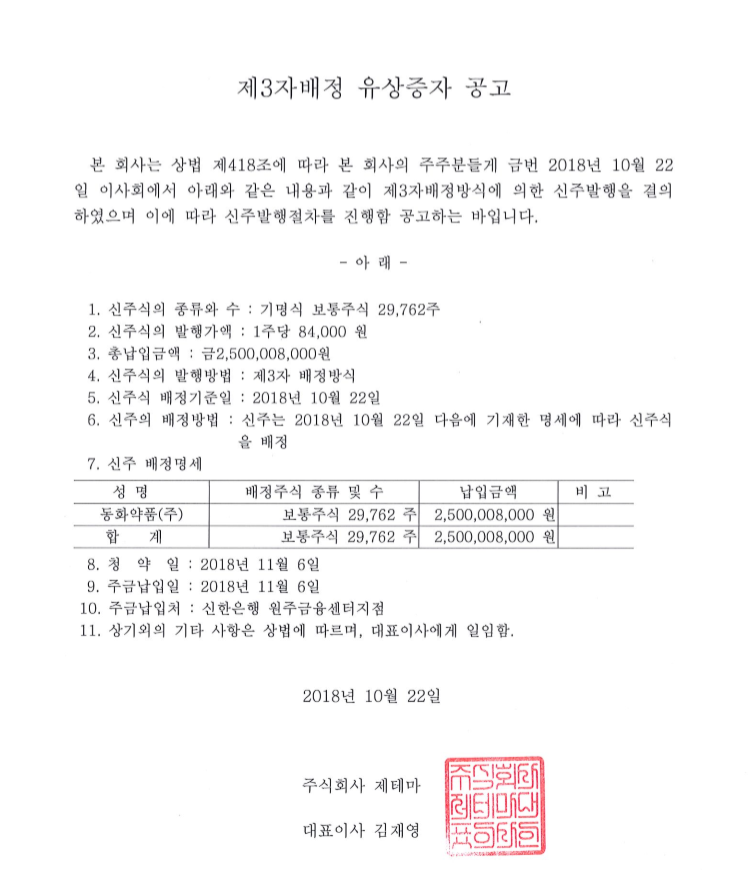 제3자배정 유상증자 공고