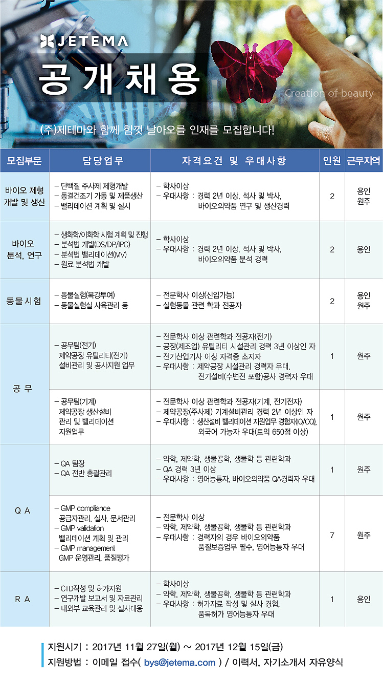 (주)제테마 공개채용 안내
