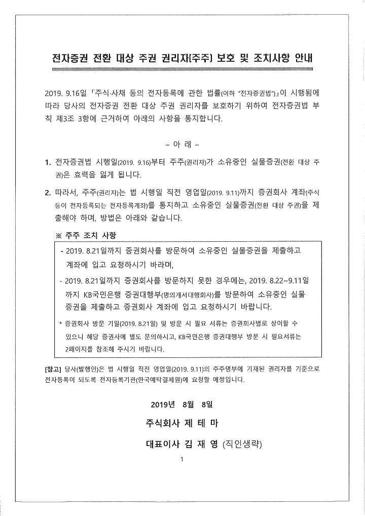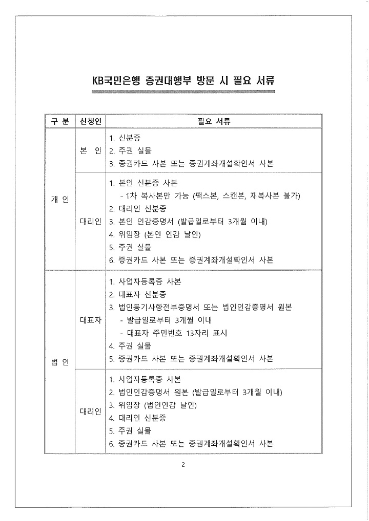 전자증권 전환 대상 주권 권리자(주주) 보호 및 조치사항 안내